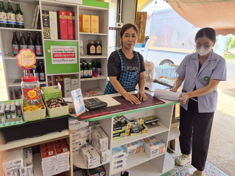 กองสาธารณสุขและสิ่งแวดล้อมร่วมกับ รพ.สต. บ้านโนนงิ้วออกตรวจร้านค้า ตรวจสอบผลิตภัณฑ์อาหาร ยา เครื่องสำอาง เพื่อดูเครื่องหมาย อย.